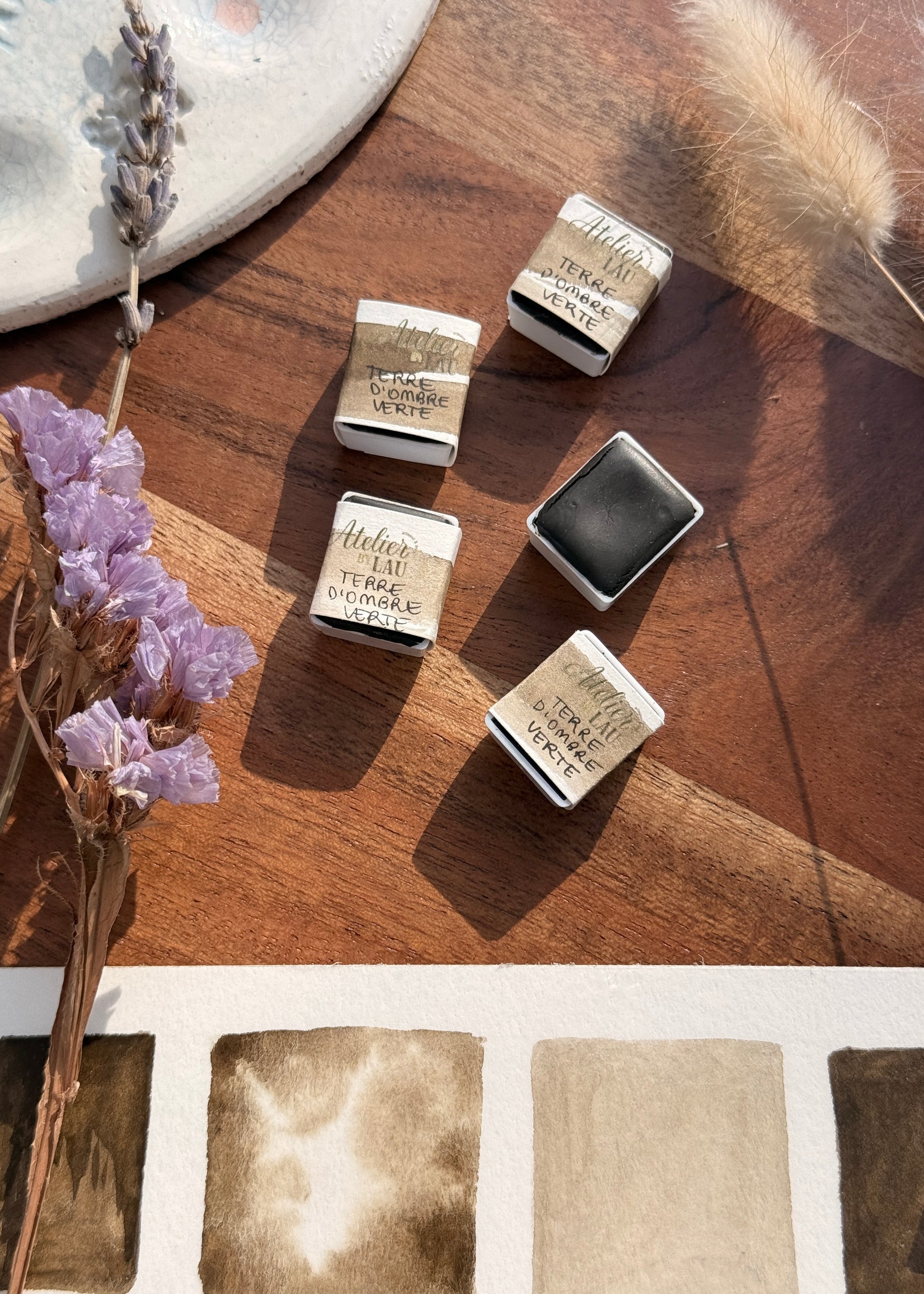 Ajoutez dès maintenant l'aquarelle artisanale Terre d'ombre verte à votre collection et apportez une chaleur naturelle et riche à vos créations.