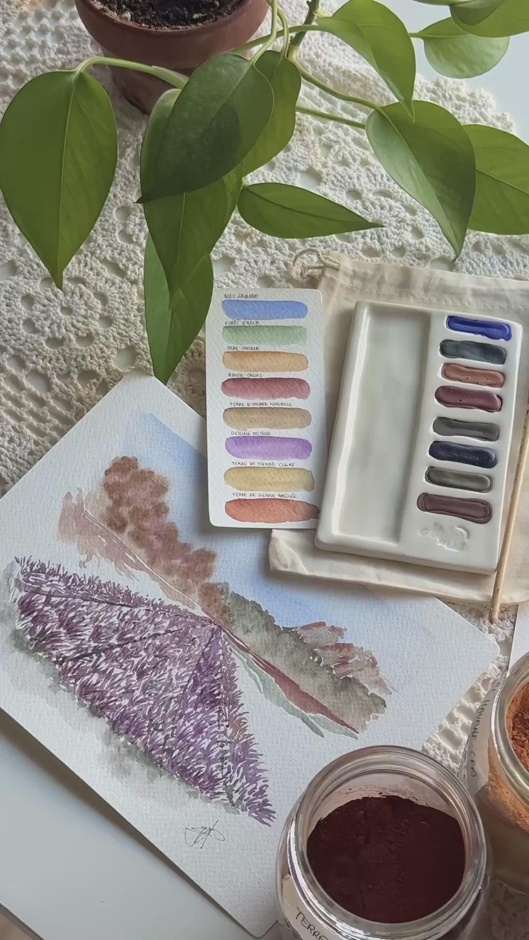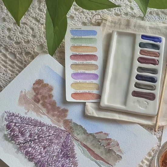 J’ai choisi de créer une palette en céramique pour rappeler ce côté terreux, brut et authentique du Colorado provençal — comme un clin d’œil à la matière, à la roche, à cette poussière d’ocre qui marque les mains et le cœur… et qui se retrouvera bientôt dans vos aquarelles.